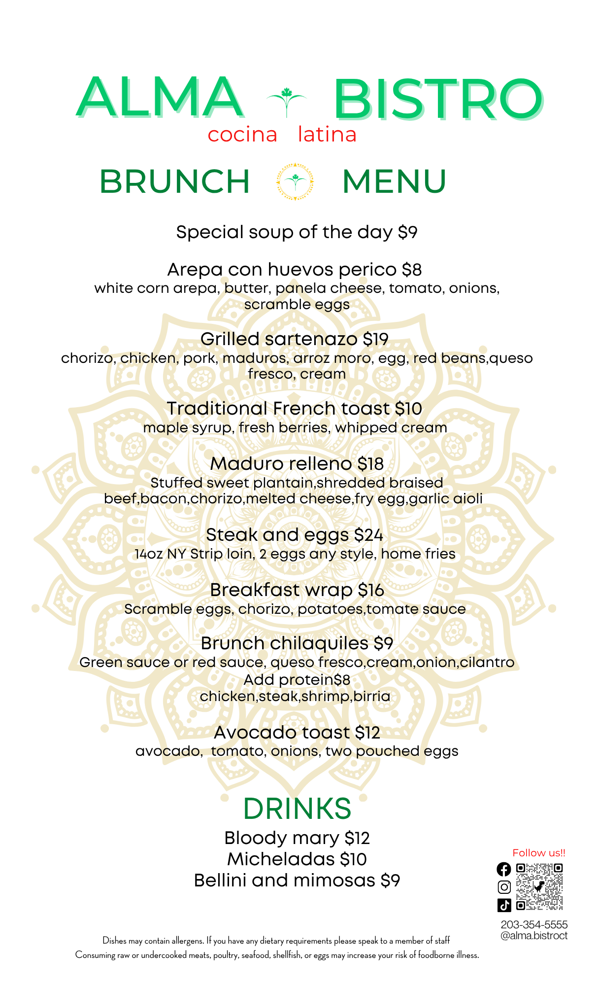 We invite you to enjoy our Sunday Brunch, served from 11:30 a.m. to 3:00 p.m.. Our menu includes the soup of the day, prepared with fresh ingredients and a new recipe each week.