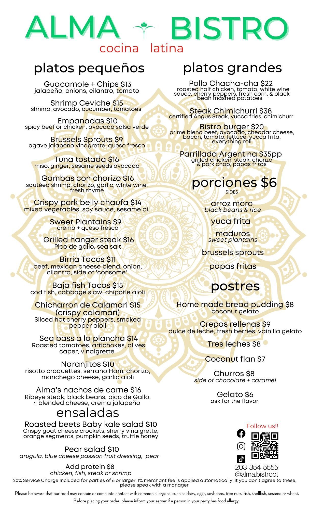We offer a weekly special menu with new small plates, entrees, drinks and desserts each week